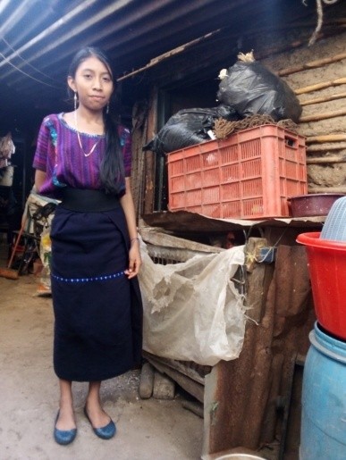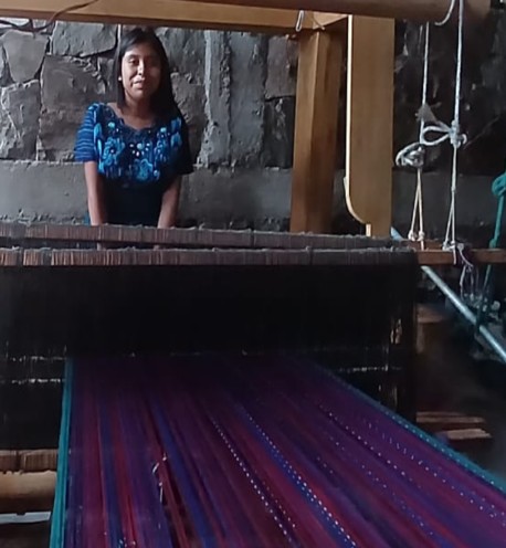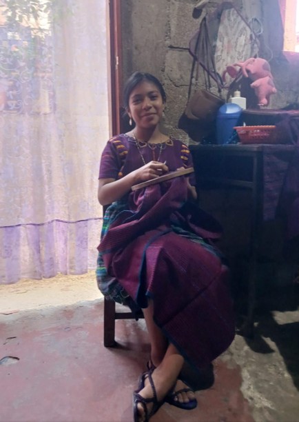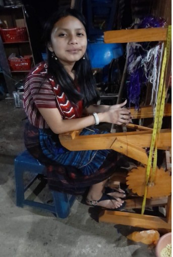 She is 15 years old and lives with her 3 siblings and her mom. Her dad passed away during Covid. She helps earn the family income by weaving scarves. In spite of this, she has the determination to keep studying and become a professional woman to help her mom, her siblings and her community.
